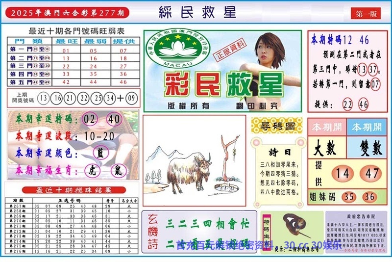 277期:♣【绝杀两肖】♣【鼠羊】開:虎16准