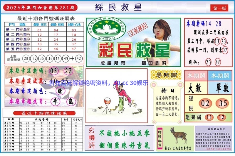 282期:⑤码34.19.48.17.23开:發00